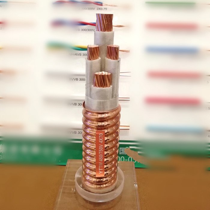 柔性無機云母帶礦物絕緣電纜:由銅絞線、氟云母帶絕緣、銅帶縱向包裹連續焊接護套構成。(不帶外護套YTTW、RTTZ,帶外護套YTTWV、WD-YTTWY、RTTZV、WR-RTTZY、BTTW、BTTRZ)。